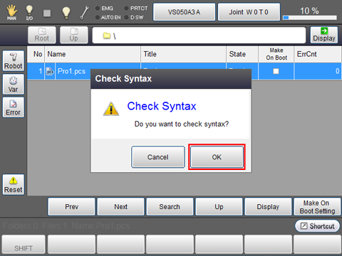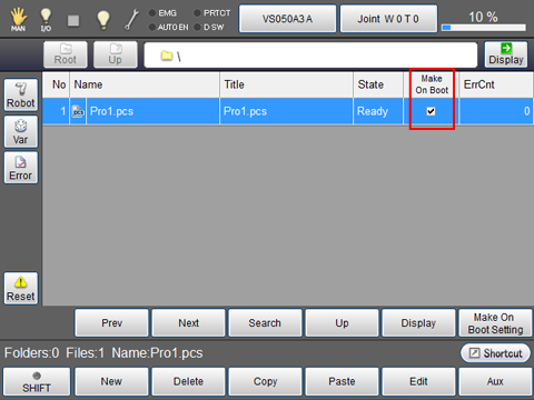 Select a program to be checked, then press [Make On Boot Setting] in the Program List window.