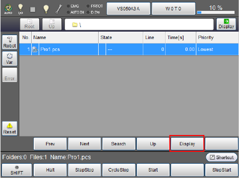 Select [Pro1.pcs] in the Program List window and then press [Display].