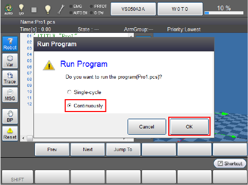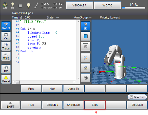 This method enables to simulate the robot motion of created programs by using teach pendant, without moving actual robot.