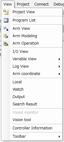 Choose View | Arm View to display the Arm view window where the simulated robot images appear.