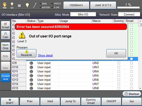 The error below appears if you choose the I/O which dummy I/O settings is not finished.