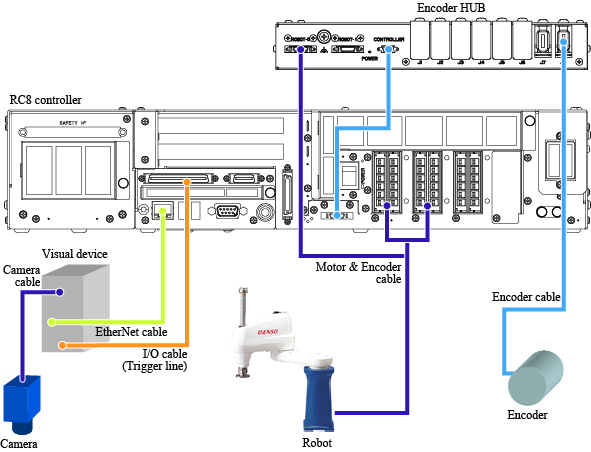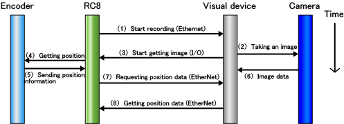 Once the visual device starts recording, it transmits trigger signal to the controller, then the controller immediately obtains position data from the encoder.