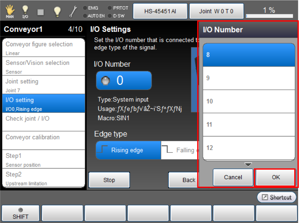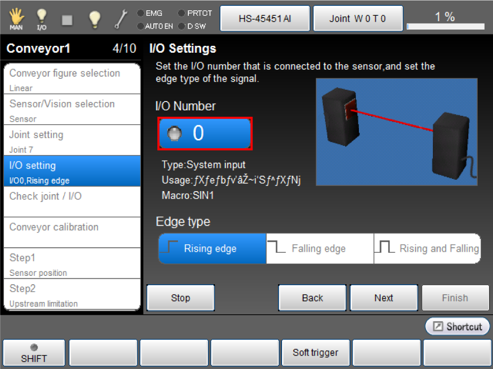 This section describes how to set the I/O port number that is connected to the sensor detecting workpiece, and the edge type.