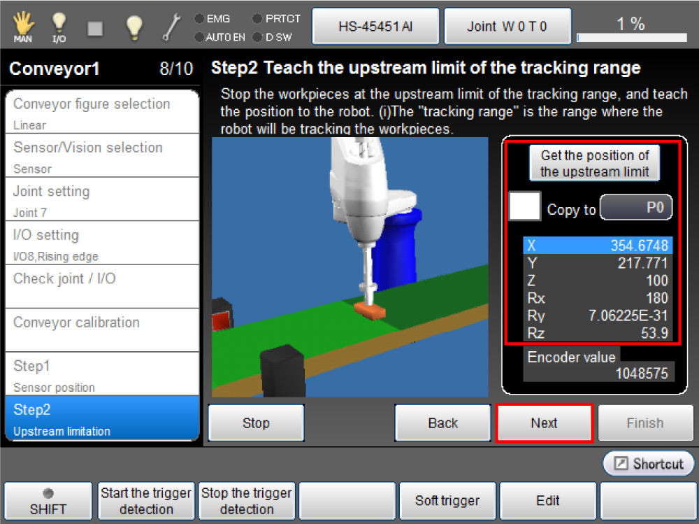 3 Executing Teaching of Upstream Limit of the Tracking Range