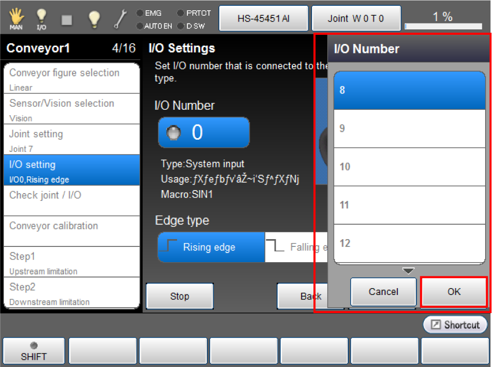 This section describes how to set the I/O port number that is connected to the sensor detecting workpiece, and the edge type.