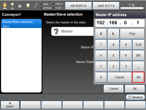 Enter the I/P address of the slave controller using numeric keypad, then press [OK].