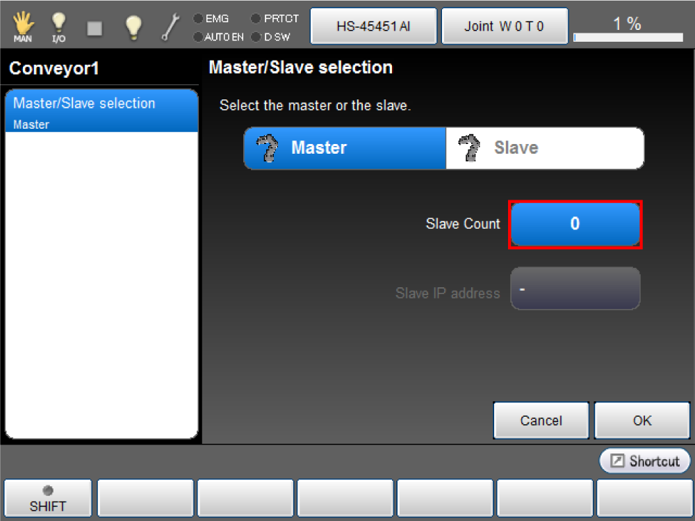 - Check that the joint setting of the slave controller is set to "Disable". If not, change the setting.
