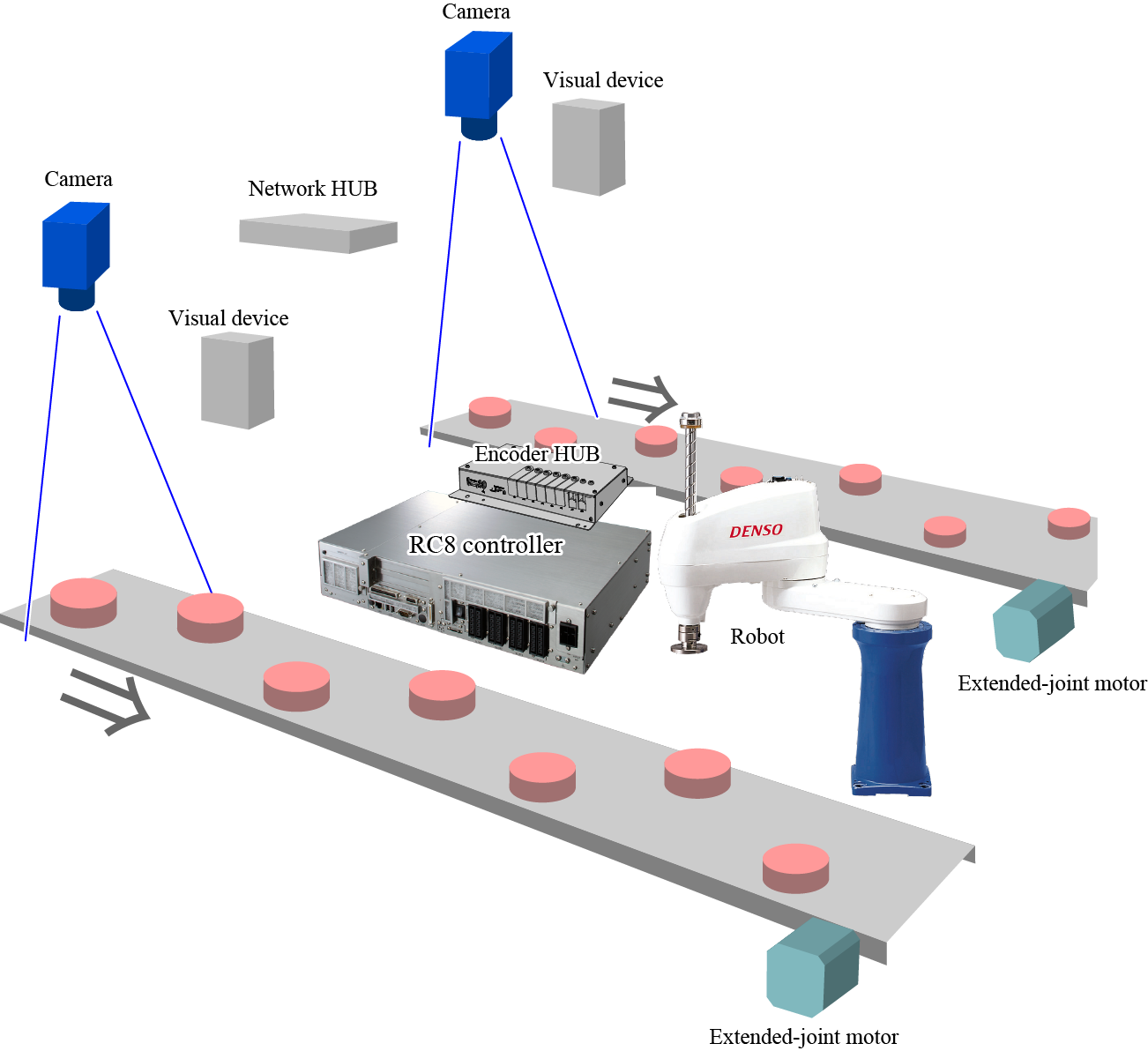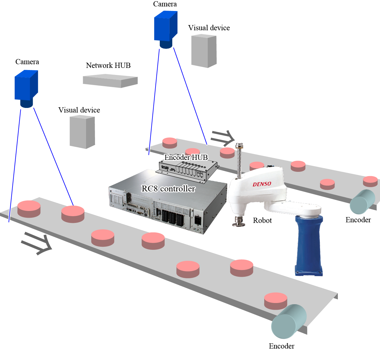 Configuration of the Conveyor Tracking System with Two Conveyors and One Robot