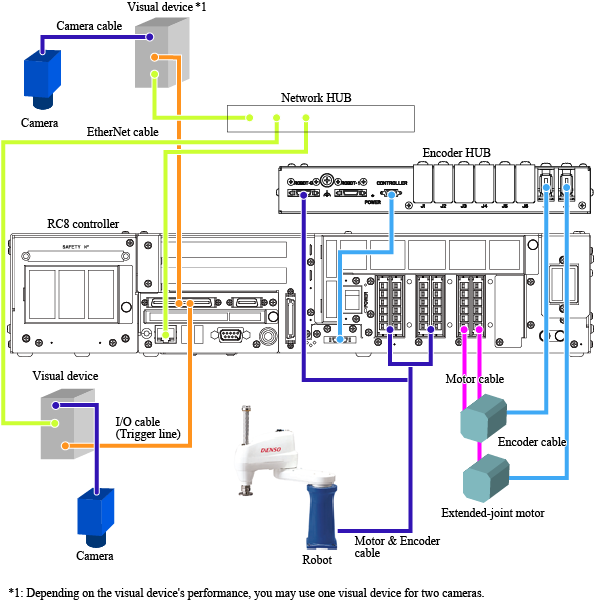 If you use a new model, connect the encoder line of the motor & encoder cable to the encoder hub's connector port indicated as "ROBOT-0" (on the left side viewed from the front).