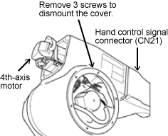 - Manually move the 4th-axis section until the hand control signal connector comes to the upper side.