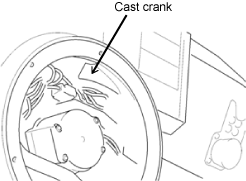 When the 4th-axis section is rotated from where it is as shown on the left, the internal wiring is caught in the crank and becomes invisible in the left figure. (The figure below shows the crank at around 250°.)