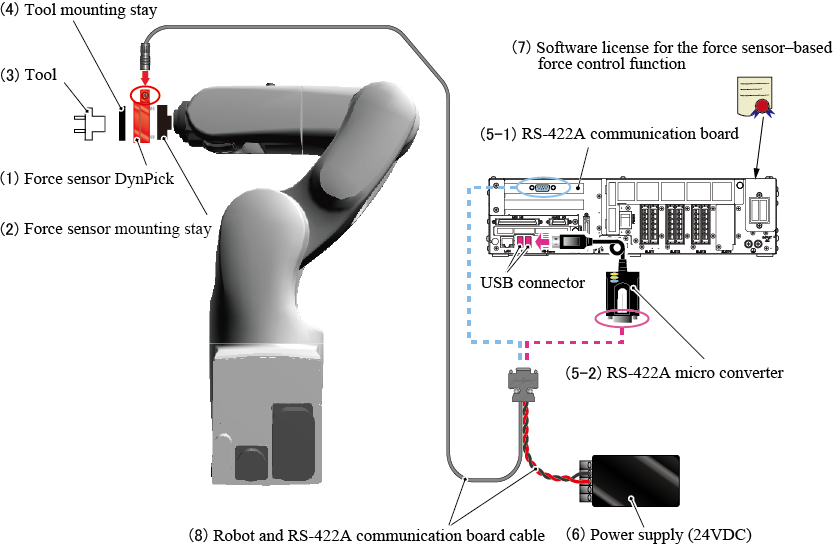 (8) Force sensor and RS-422A communication board cableWACOH-TECH Inc.