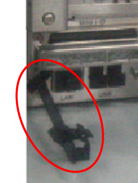 Remove the rubber cover (see a red circle in the figure below), then attach the cable clamps shipped with the robot.