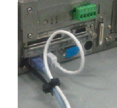 Tighten a LAN cable and a USB cable to the cable clamp.