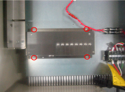 Remove the terminal board cover. Lay prepared power cable with M4 screws as shown below.