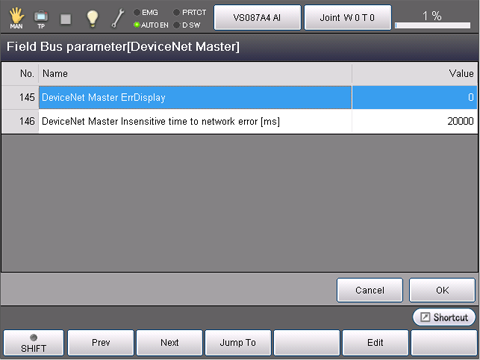 | DeviceNet Master Insensitive time to network error [ms] | 0~65535 |