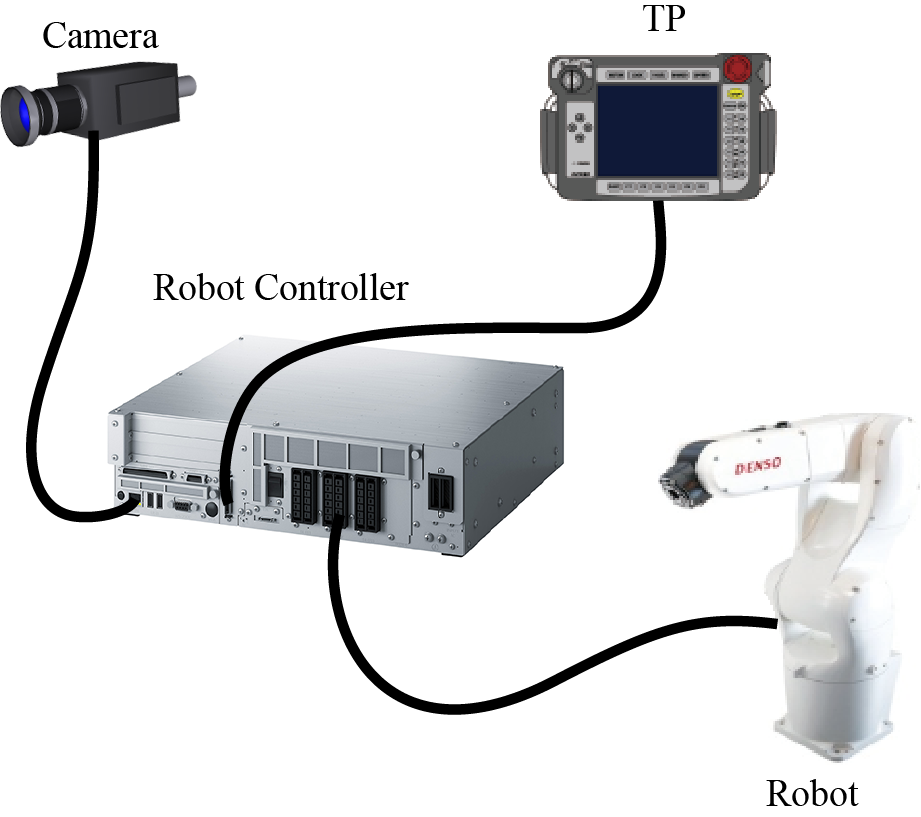 To use Built-in Vision, directly connect the FA camera to the robot controller as shown below.
