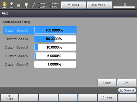 Operation path 1 : [SPEED] key on the teach pendant - [F6 Aux]