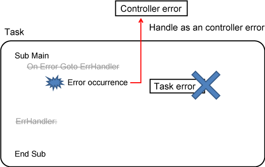 - Task errors are controlled by Err objects, and it can be referred by tasks when an error occurs.