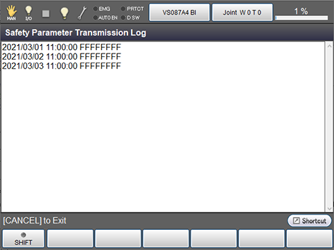Operation path:[F2 Arm] - [F12 Maintenance] - [F5 Safety Motion] - [F3 Transmission Log]