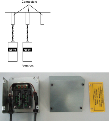 Connect the connector and install two batteries. Enclose the batteries in the case.
