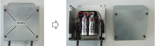 Using the four bolts that were removed in STEP2, install the cover of the battery converion box.