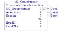 To restart the robot motion, use the AOI "MC_GroupContinue".