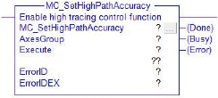 The high precision control function is used to improve the precision of motion paths of the robot. The precision of motion paths can be improved particularly in the high-speed arc motion and free curve interpolation control. The high precision control function provides stabilized robot motions in sealing and other work.