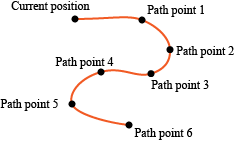 Multiple path points, or position data can be registered to a single path data set. Free curve interpolation uses the specified path data set to pass through each registered path point at a constant speed in the specified order to form a smooth curve.