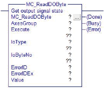 IoByteNo Robot controller port number Robot controller I/O name 0 16 CPU Normal 17 User output 18 User output 19 User output 20 User output 21 User output 22 User output 23 User output 1 24 User output 25 User output 26 User output 27 User output 28 User output 29 User output 30 User output 31 User output