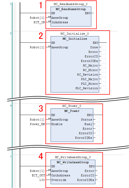 Therefore, place this FB prior to any FBs other than "MC_ReadAxesGroup".