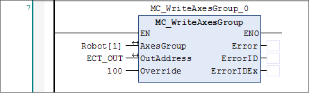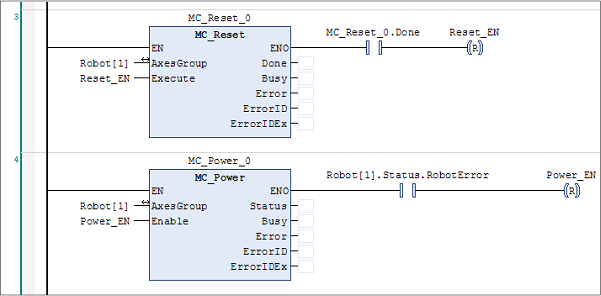 At the same time, create a program so that the input variable "Enable" of "MC_Power" reset when an error occurs.