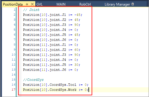In this example, "Position[10]" is declared as a start position and "Position[11]" is declared as a target position.