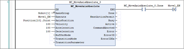 Place "MC_MoveAxisAbsolute" to move the robot to the target position.