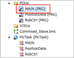 In the [POUs] folder, create [(MAIN)main program], [(PositionData)position data program] and [(RobCtrl)robot control program].