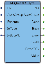 IoByteNo Robot controller port number Robot controller I/O name 0 64 Hand output 65 Hand output 66 Hand output 67 Hand output 68 Hand output 69 Hand output 70 Hand output 71 Hand output - Mini I/O