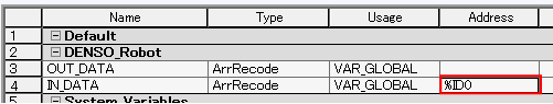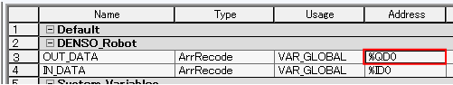 For a variable address for input, enter an address created by "I/O Setting" in DWORD type.