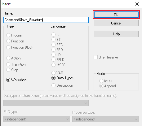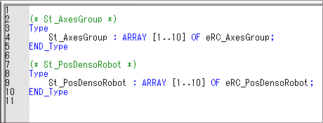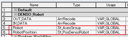 In this example, describes how to create "eRC_AxesGroup" and "eRC_PosDensoRobot" as structured type data for array.