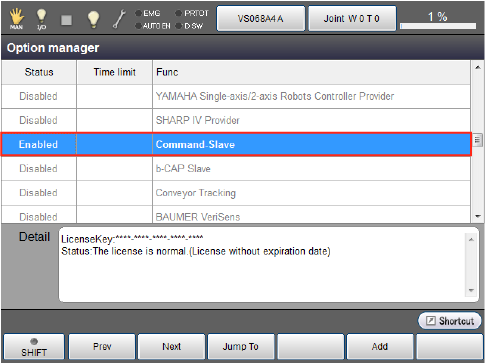 Once the license has been registered, the status of [Command-Slave] turns [Enabled].