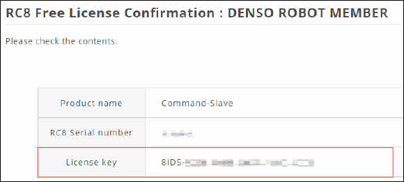 | RC8 Serial number | Serial number of the robot controller that the license is added |