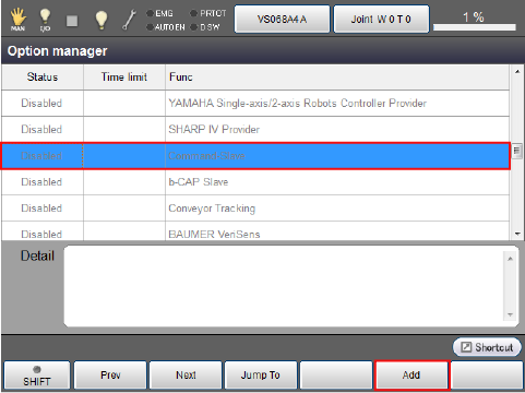 From the [Option manager] window, select [Command-Slave] and then press [F5 Add].