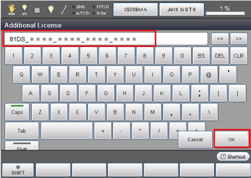 Once the [Additional License] window appears, enter the obtained license key. Press [OK].