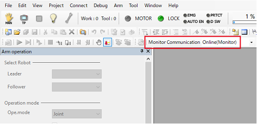 Connect WINCAPSIII and the robot controller, and set to the Online (Monitor) mode.