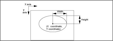 VISELLIPSE <X coordinate >, <Y coordinate >, <width>, <height> [, <mode>]