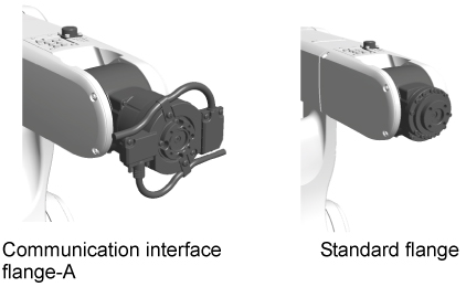 The flange has connectors for signal wiring and Ethernet (1000 BASE-T) interface. It eliminates the need for wiring from the second arm, allowing wiring without regard to wiring problems that could be caused by movement of 5th and 6th axes.