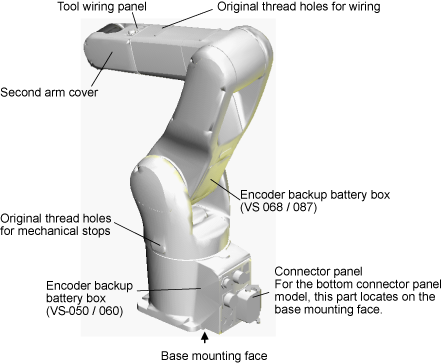 The figures below show the names of the components of the robot unit and the rotation direction of each axis.