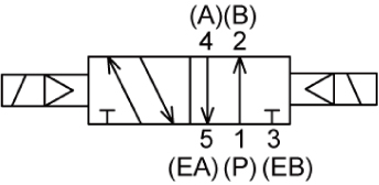 When both solenoids A and B are deenergized or when the power is OFF, the valve is in the center position to exhaust the residual pressure of solenoids A and B.