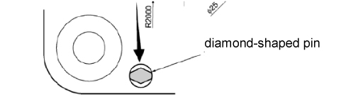 Drive the diamond-shaped pin into the ø4H7 hole so that it orients as shown below.