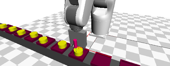 A sample program for Pick & Place motion is shown below. Prior to the pick motion of a circular work, the center position of the work is acquired via the robot arm sensor, and positioning will be corrected as necessary.