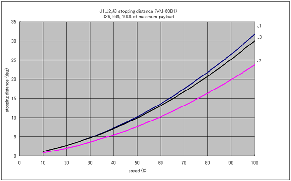 J1, J2, J3 Stopping Distance vs. Speed at an Emergency Stop (VM-60B1 series)